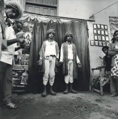 Shooting with a wide angle lens and a long exposure (up to five seconds), many of Pam’s photos are ‘street portraits’ – outdoor, posed shots of people who he builds a rapport with, maybe two or three individuals (sometimes identical twins), with all manner of life going on around them – and often at least one blurred element, usually a person moving. For Pam, aside from the connection to the 19th century pioneers (who didn’t have fast exposures for their cameras), the blurring represents “that power that is swirling all around... it’s that energy that is inherent in everyone.” (Pam never takes candid photos, going so far as to call them ‘stolen’ photos and an aggressive act.) But it’s hard to pin Pam down. He also takes wonderful shots of nudes, and pictures of hands holding strange objects. In his books, he’s interested in the juxtapostion of the double page spread.